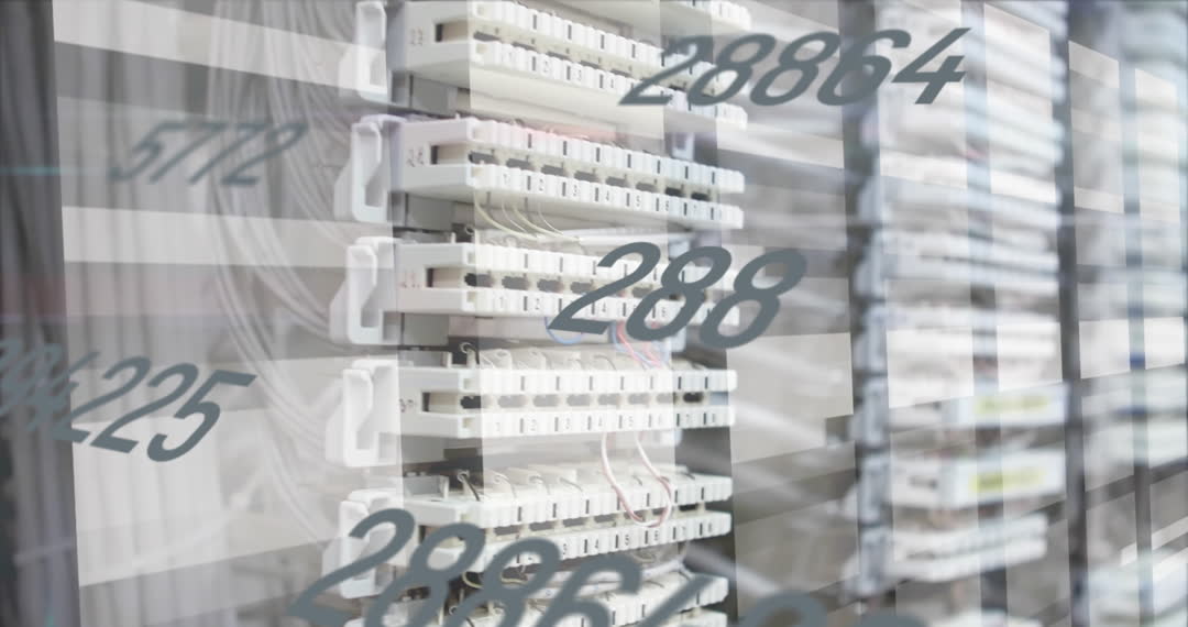 Digital Data Flow on Server Racks with Animated Numbers Video