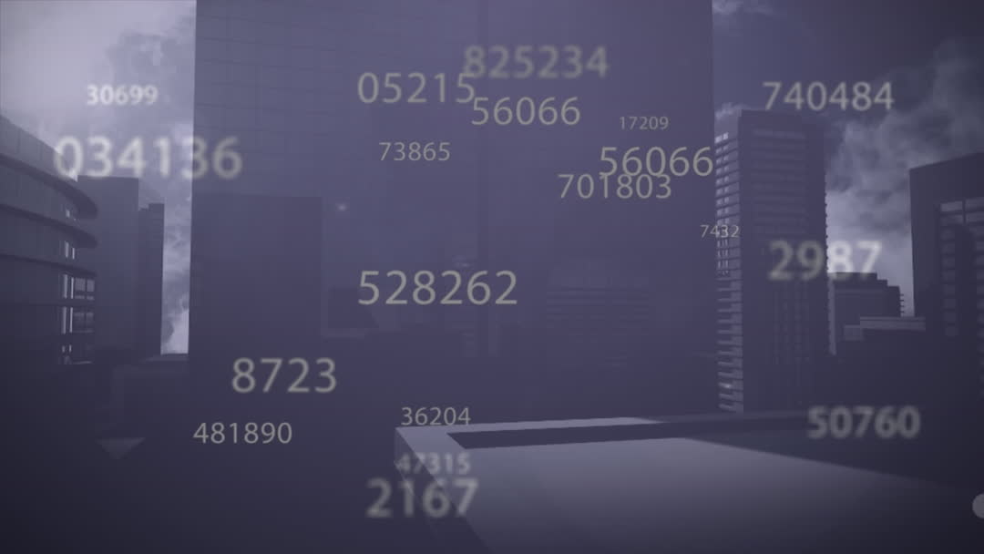 Displays a dynamic blend of numerical data flowing over a modern urban backdrop. Perfect for illustrating the concepts of digital networks, big data analytics, and financial technology in immersive presentations or marketing campaigns related to business innovations.