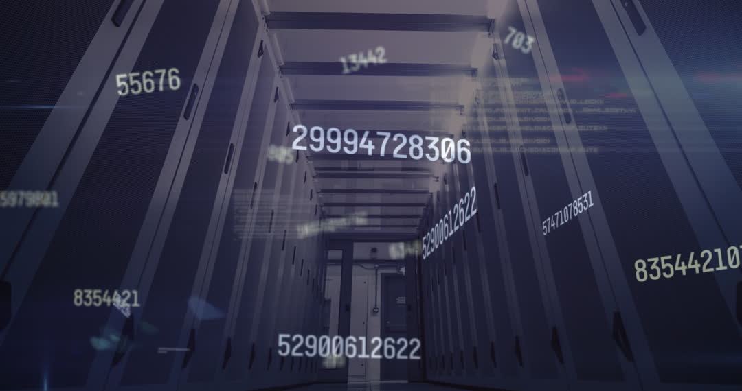 An illustration depicting dynamic numeric data flowing over rows of servers in a technologically advanced server room. This video encapsulates the concept of digital networking and data processing, ideal for use in technology presentations, IT service promotions, cyber security illustrating materials, and visual backgrounds for computer networks articles.