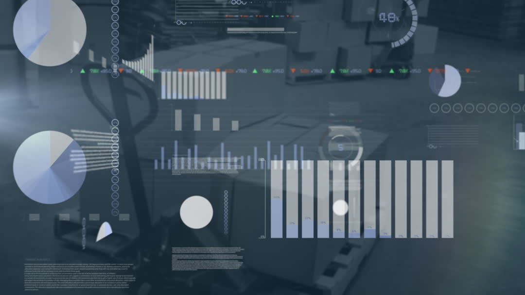 Depicting an animated overlay of data processing and digital interfaces in a warehouse setting, this video is perfect for illustrating the integration of technology and data analytics in logistics and supply chain management. Use it for business presentations, technology articles, or to highlight the role of digitalization in modern warehouses.