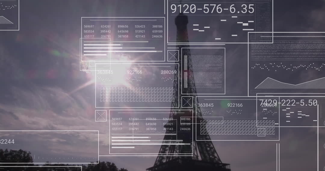 - Digital Data Process Overlay with Paris Eiffel Tower