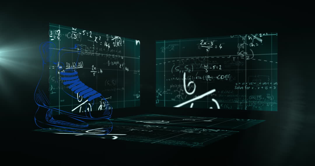 The video shows an animated scene featuring digital data being processed, with floating mathematical and code formulas on dark backgrounds. Open glowing visual effects portray global science connections, illustrating themes of online security with a padlock structure. Use to symbolize cyber security, tech presentations, or studies related to digital innovation projects.