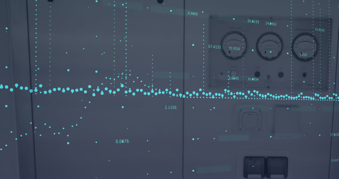 Abstract depiction of digital data overlay on industrial control panels, illustrating advanced data processing and diagnostics technology. Useful for displaying concepts in smart industries, system diagnostics, or advancements in industrial IoT solutions.
