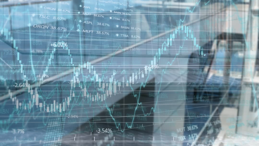 The video creatively blends virtual data processing graphics with a modern cityscape setting, symbolizing the integration of technology and urban landscapes. This visual is ideal for use in presentations, websites, or articles focusing on global business, technological advancements, or data analytics.