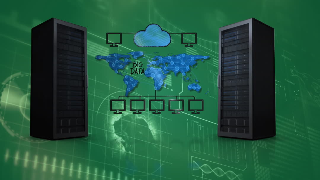 Digital Data Processing with Global Network and Servers Video
