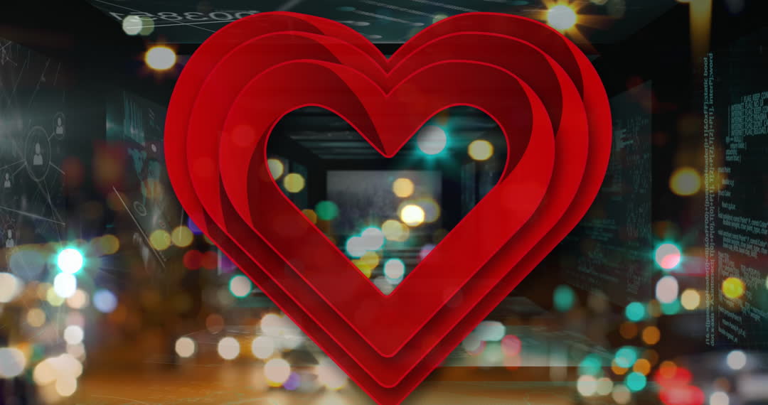 Digital Data Processing with Heart Animation and Bokeh Effects Video