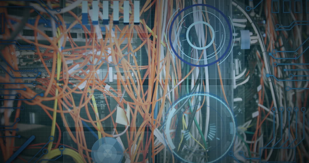 Visual depiction of complex data processing surrounded by network wires. Utilized for discussing IT infrastructure, showcasing digital transformation, or illustrating connectivity and information flow concepts in presentations. Suited for use in articles addressing technological advancements or digitally powered networks.