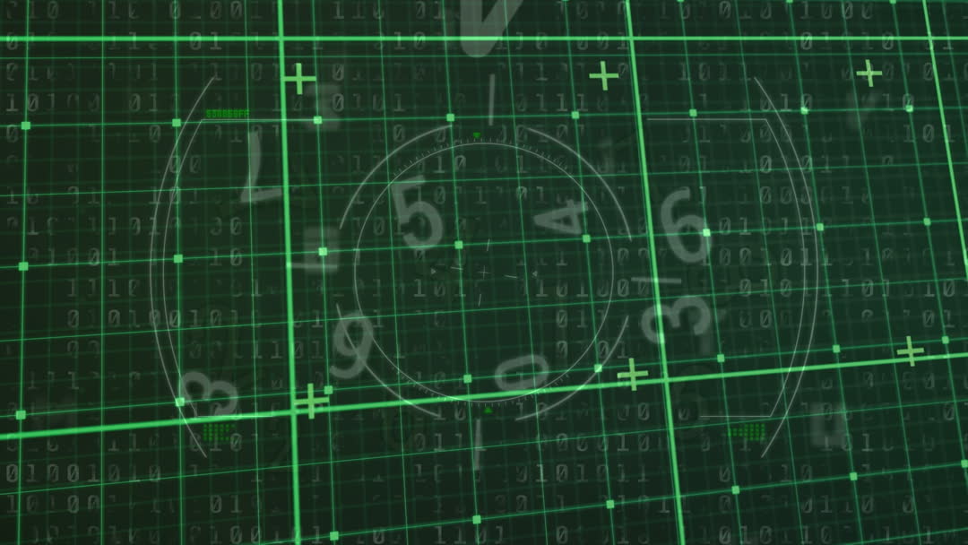 Digital Data Processing with Numeric Overlay on Green Grid Video