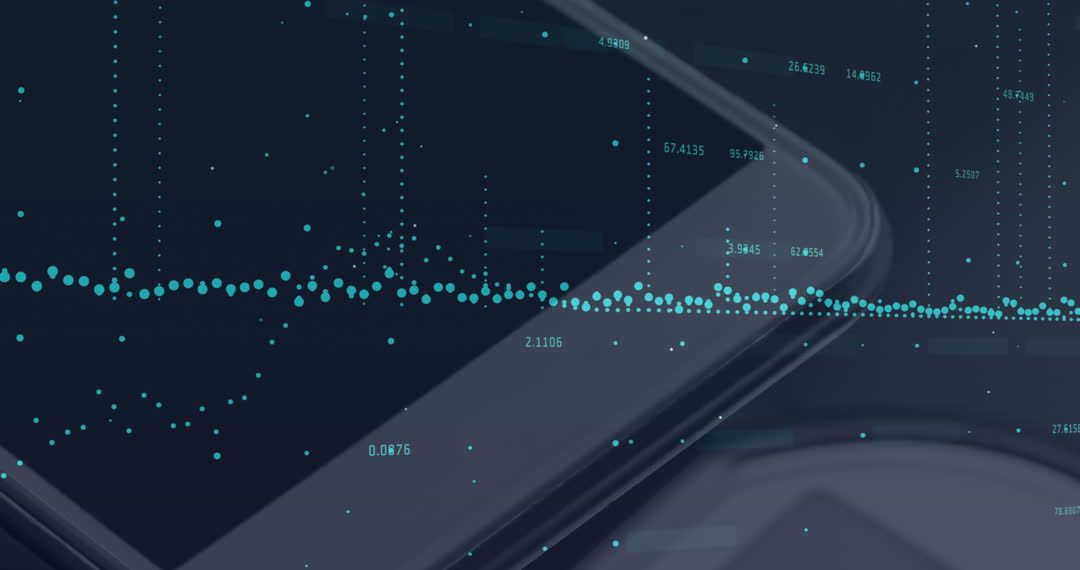 Modern animated concept illustrating digital data processing on a smartphone surface, representing technology's role in global business and data analysis. Ideal for use in presentations and materials related to technology, innovation, data science, and digital marketing.