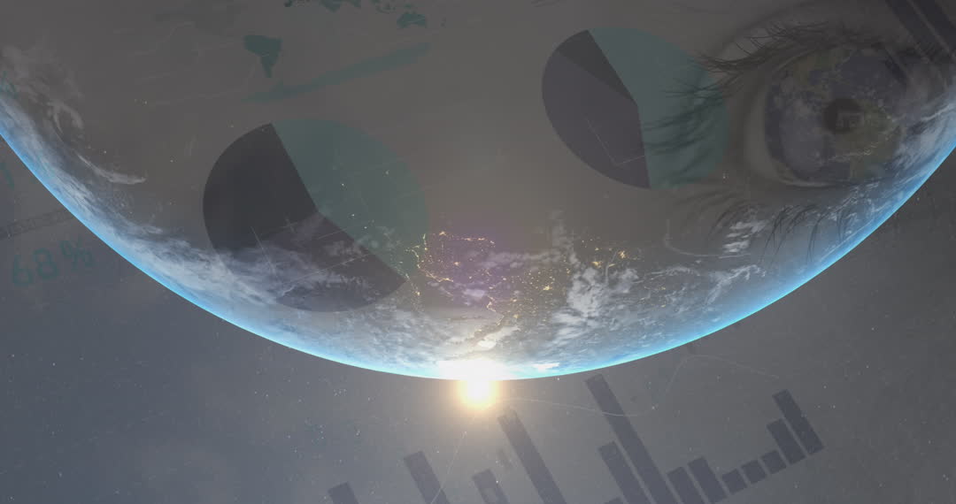 Blending futuristic digital statistics with view of Earth from space suggests global finance and business analytics. Perfect for presentations on financial trends, technological advancements, global business strategies, or educational content teaching data analyses and interpretation.