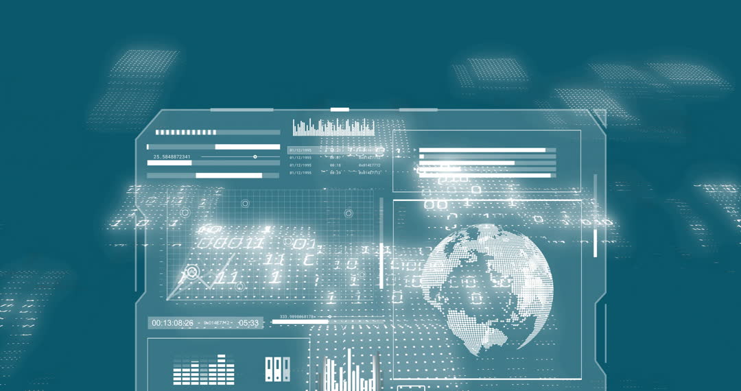 Features data visualization with digital interface and globe, perfect for presentations on global finance, technology advances, or connections in computing. Ideal for illustrating modern digital transformation and technology themes for websites or educational materials.