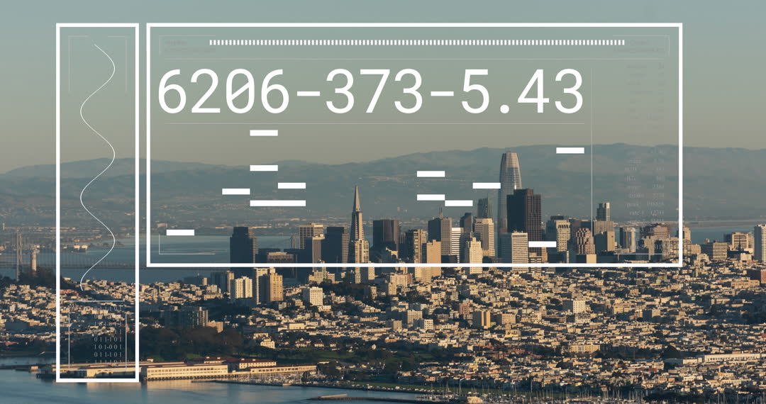 Digital Data Visualizations over Urban Landscape Skyline Video