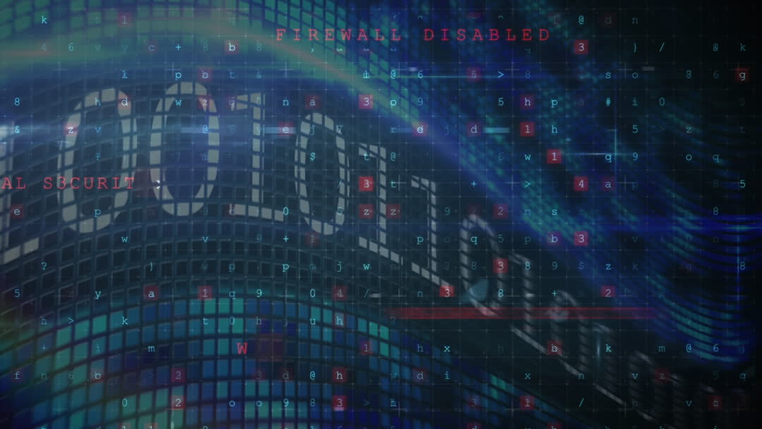 This video illustrates a digital animation focusing on cybersecurity issues, showing binary code and the phrase 'firewall disabled.' It conveys the concept of a data breach or network vulnerability, making it ideal for use in cybersecurity presentations, technology warnings, educational materials about data protection, and internet safety campaigns.