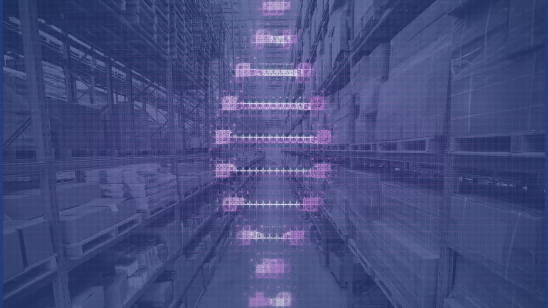This video depicts a futuristic digital DNA strand projected over the interior of a warehouse, merging technology and innovation with storage and logistics. The blend of physical and virtual elements highlights the convergence of genetics data and modern supply chain management. This visual could be useful for illustrating themes in biotechnology, data analysis, logistical efficiency, and innovative business practices across technological articles, business reports, or educational presentations.