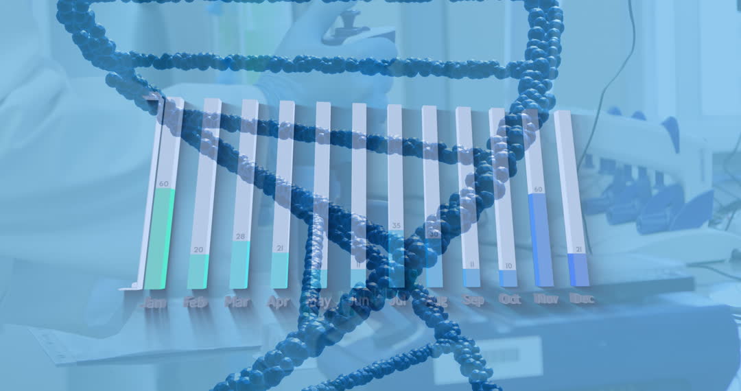 - Digital DNA Strand with Data Analytics Visual Overlay