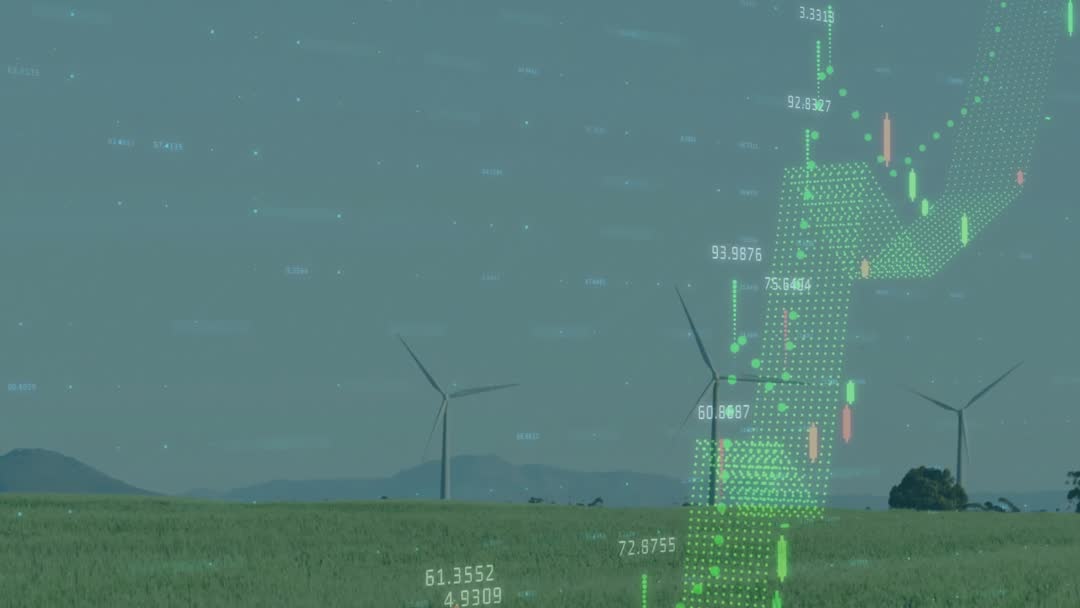 Digital Energy Analysis on Wind Turbine Landscape with Candlestick Overlay Video
