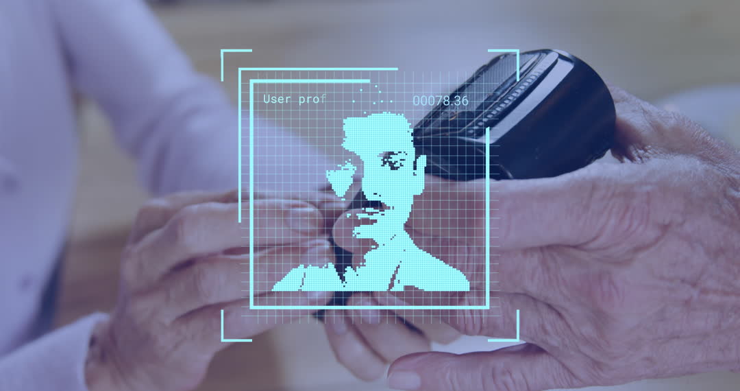 Digital Face Recognition AI Overlay on Tech Interaction Video