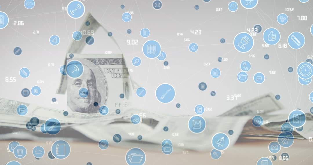 This visual represents the intersection of digital technology and traditional finance, showcasing dollar bills overlaid with digital network icons. It highlights the concept of modern financial operations through interconnected systems such as online banking and digital trading. Ideal for illustrating themes of financial technology innovation, enhanced connectivity in banking, and the rise of digital currencies in blogs, articles, or business presentations.