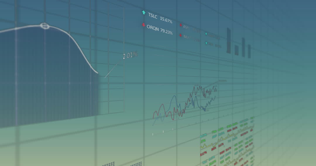 Conceptual illustration displaying various stock market charts and trading data over a gradient background and grid, symbolizing financial analysis and market trends. Suitable for use in reports, presentations, websites about finance, business analysis themes, or educational materials focused on learning about financial trends and economy.