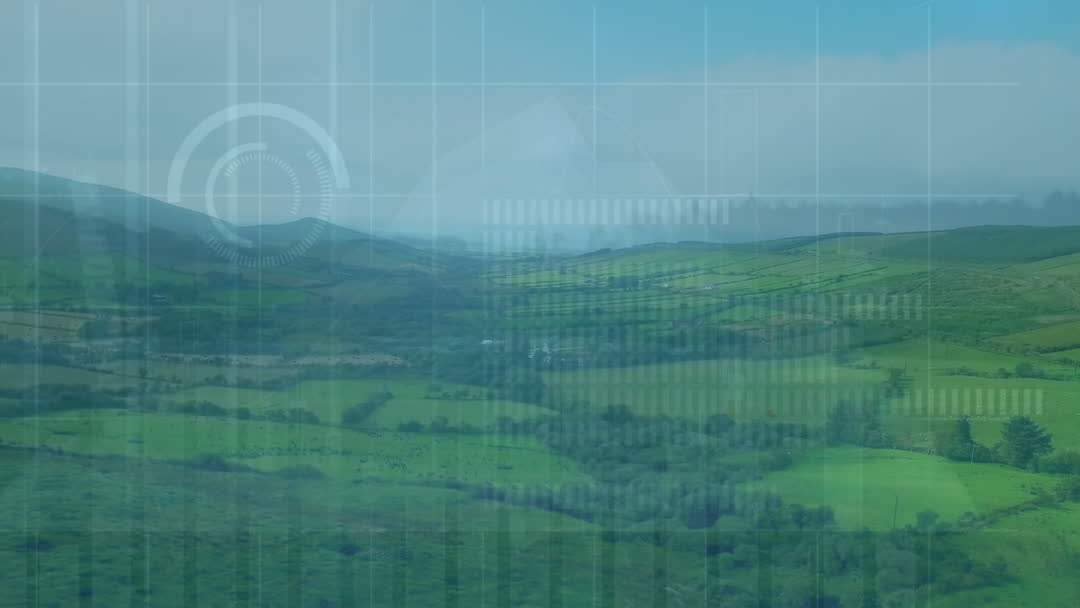 Digital Financial Data Overlay on Rural Landscape Background Video