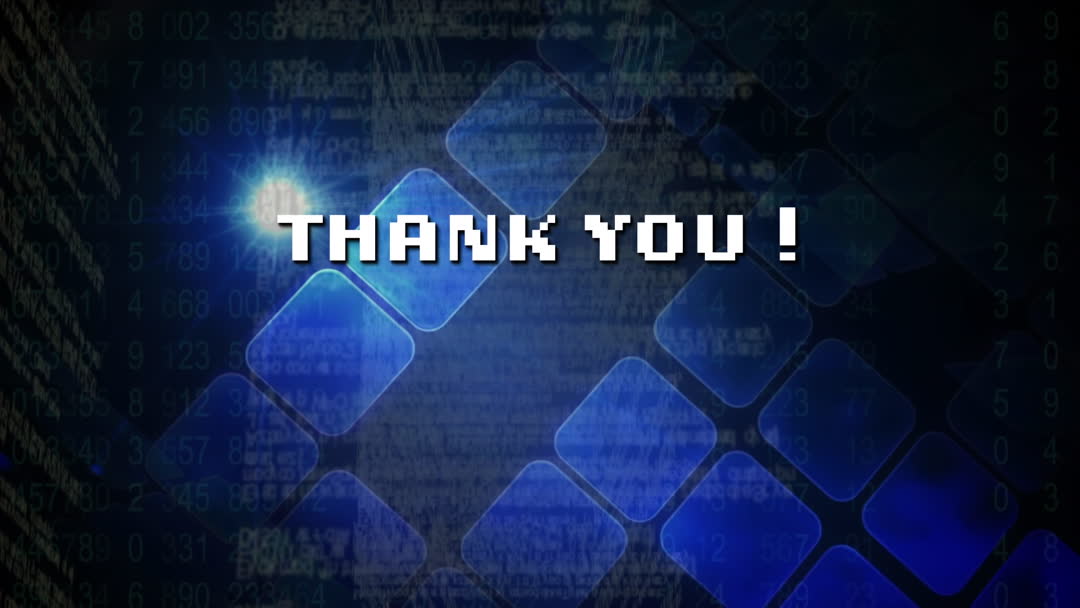 Digital financial theme with pixelated 'Thank You!' message overlays blue data graphics and matrices, providing a modern and tech-savvy visual for presentations, finance contexts, or thank you cards focused on technology and investment. Ideal for use in promotional content, financial updates, or tech forums to convey appreciation with a high-tech flair.