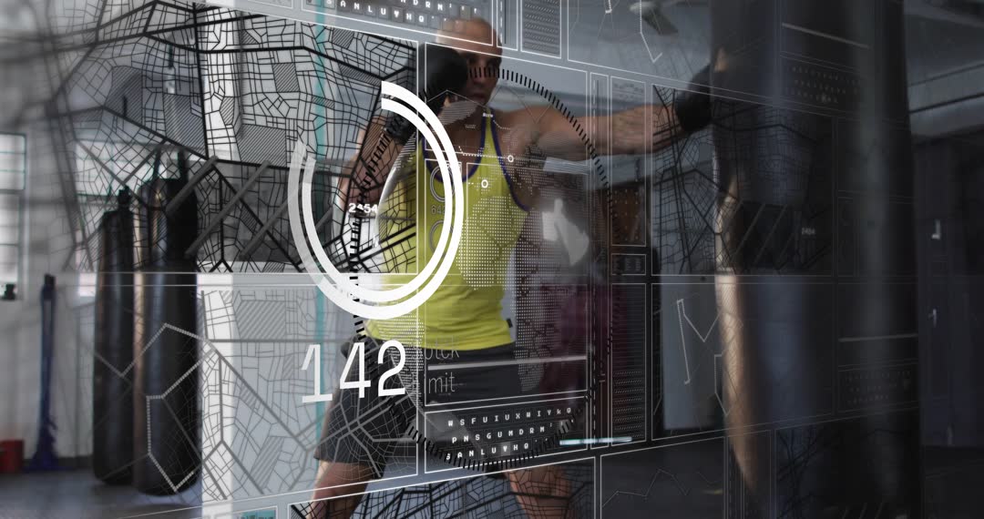 - Digital Fitness Analytics with Man Punching Bag in Gym