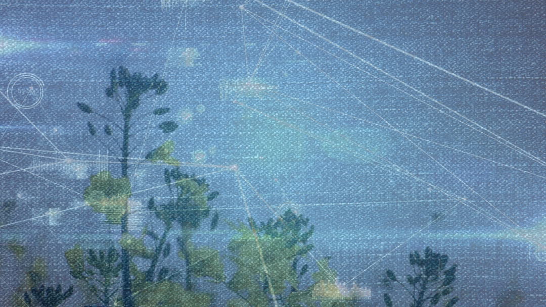Animated scene displaying plants intertwined within digital network connections. Ideal for concepts involving technology integration with nature, global communication, business presentations, or futuristic interfaces. Suitable for backgrounds in technology blogs, webinars, and digital art presentations.