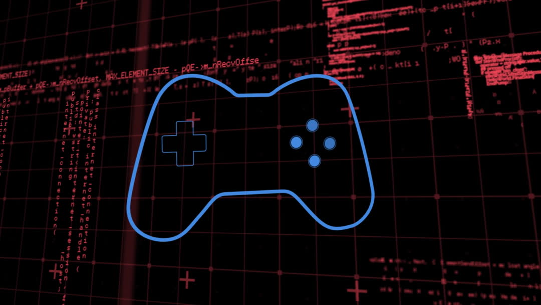 Illustrating a virtual game controller overlaying a backdrop of data and programming code, highlighting the blend of gaming technology and software development. Useful in articles, blogs, or graphics related to computer programming, gaming software development, or the digital technology industry.
