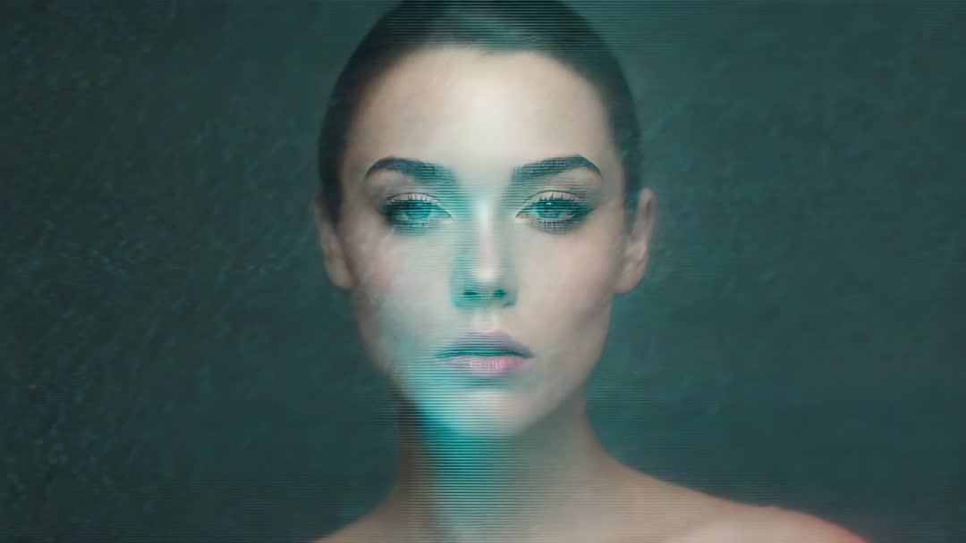 - Digital Glitch Effect Sweeping Model's Face in Studio