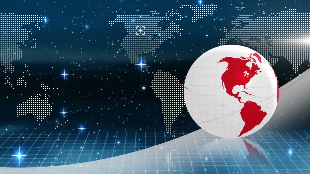 Dynamic depiction of technological globalization showing an abstract red and white globe against a grid-patterned world map filled with stars. Ideal for concepts around global communication, technological innovation, or digital networking. Suitable for presentations, advertising, or educational materials focusing on technology and globalization themes.