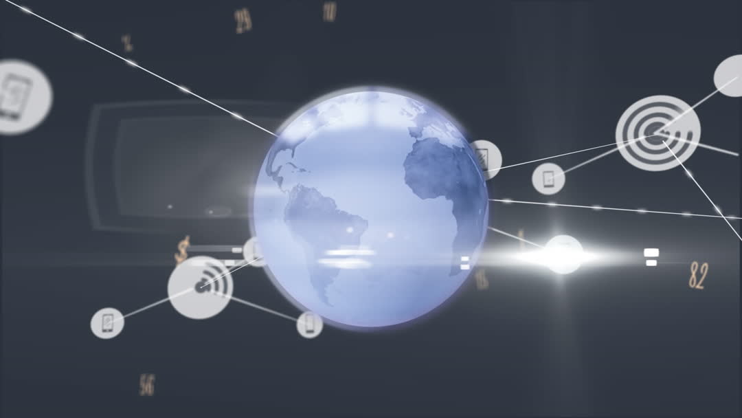 Abstract depiction of global digital networks and technology. Utilized for illustrating modern communications, technology themes, or educational content about data connectivity within global frameworks. Ideal for multimedia projects showcasing innovation and digital transformation.