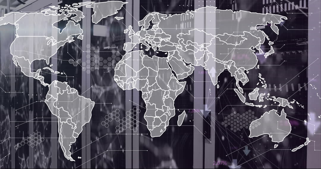Digital Global Network Interface Overlaid on Server Infrastructure Video