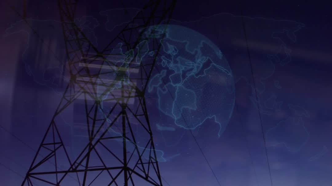Digital Globe and Electric Tower Highlighting Global Connectivity Video