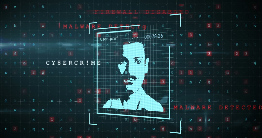 The design illustrates digital threats such as malware and cybercrime, featuring a matrix-style digital face. Ideal for use in cybersecurity awareness content, general tech discussions, blogs on digital safety practices, or promotional material for IT services focusing on cyber defense strategies.