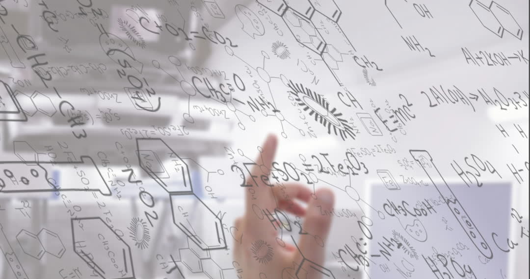 Focusing on hand reaching towards translucent digital layout featuring formulas. Attraction for science, business growth, analysis articles, technology. Suitable for websites, brochures demonstrating cutting-edge digital integration, strategic innovation ideas for presentations.