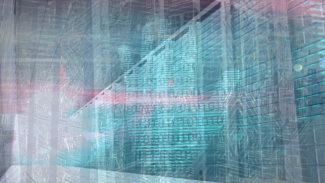 Visualization of digital hand scan with binary coding across server environment, illustrating advanced cybersecurity measures. Useful for articles or materials related to cybersecurity technology, data protection advances, or digital biometric systems.