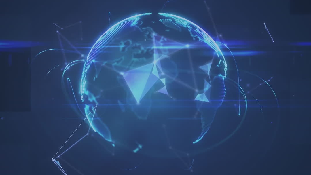 Glowing rotating globe encircled by interconnected dots serves as the backdrop for animated happy birthday text, ideal for digital cards and online birthday wishes, enhancing global, interconnected celebration themes. Suitable for social media posts and digital greetings underscoring technological connections and worldwide engagement.