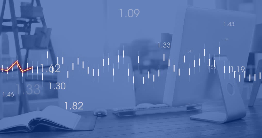 A digital heartbeat animation overlays a contemporary office desk, equipped with a desktop monitor and an empty chair. This visual represents concepts of growth and business analytics. Ideal for illustrating financial services, innovative business practices, and digital technology themes for marketing materials or technology websites.