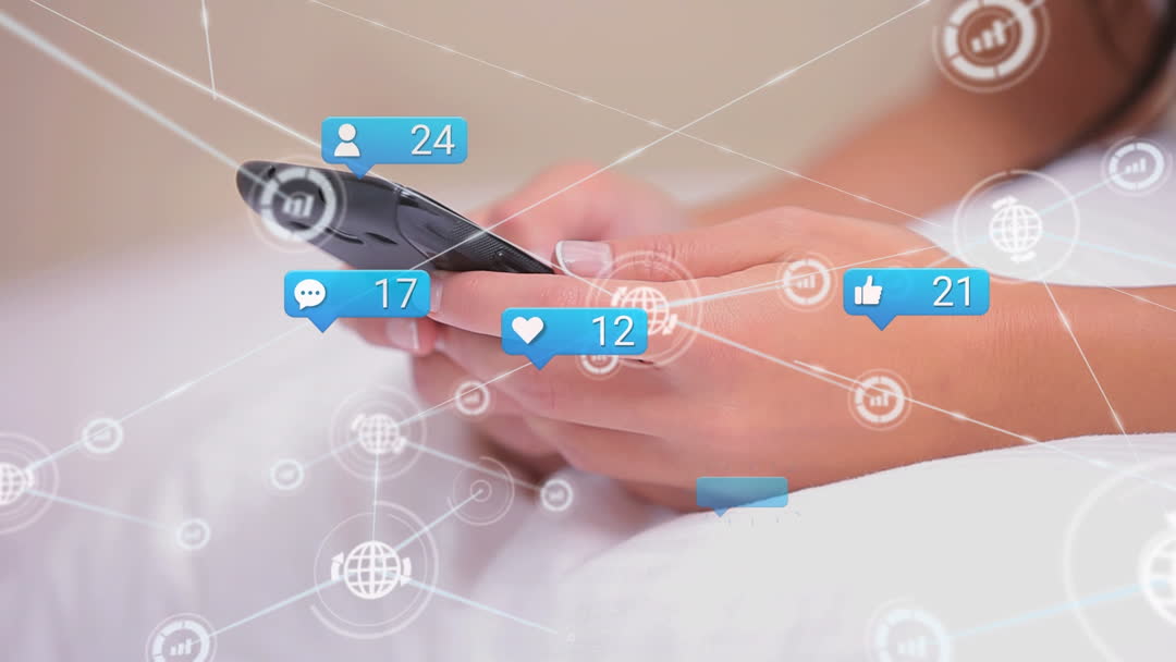 Illustrates modern digital communication through social media concepts. Useful for any project focused on connectivity in business, illustrating digital life or interaction through devices. Highlights network connectivity and the user engagement experience on social platforms.