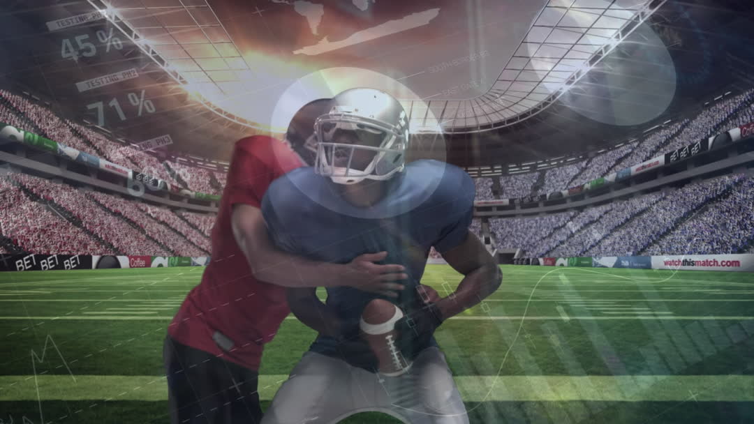 Digital Interface and Diverse Rugby Players in Stadium Video
