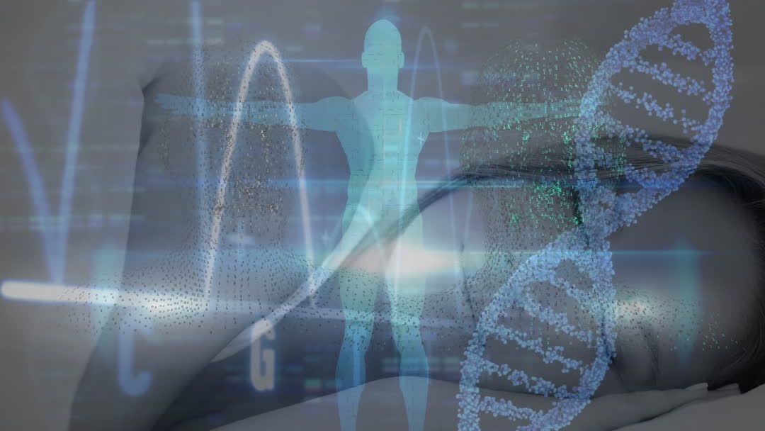 - Digital Interface and DNA Overlay on Sleeping Woman