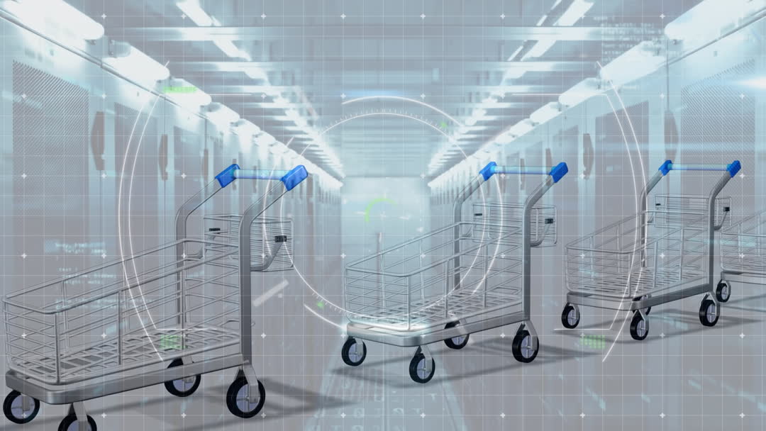 This visually intriguing concept combines shopping carts with digital data elements, creating a seamless bridge between traditional retail and digital innovation. Useful for illustrating modern retail trends, technology in commerce, or articles about future retail systems and digital-shopping interfaces. Ideal for presentations or websites focusing on tech-driven market solutions.