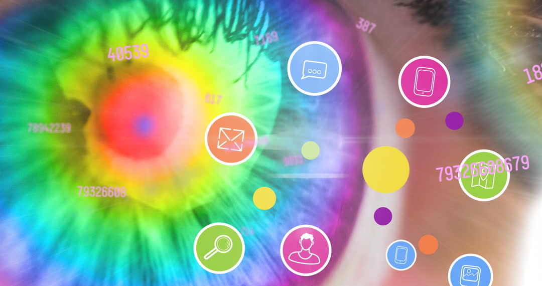 - Digital Interface Icons Overlaying Colorful Eye Animation