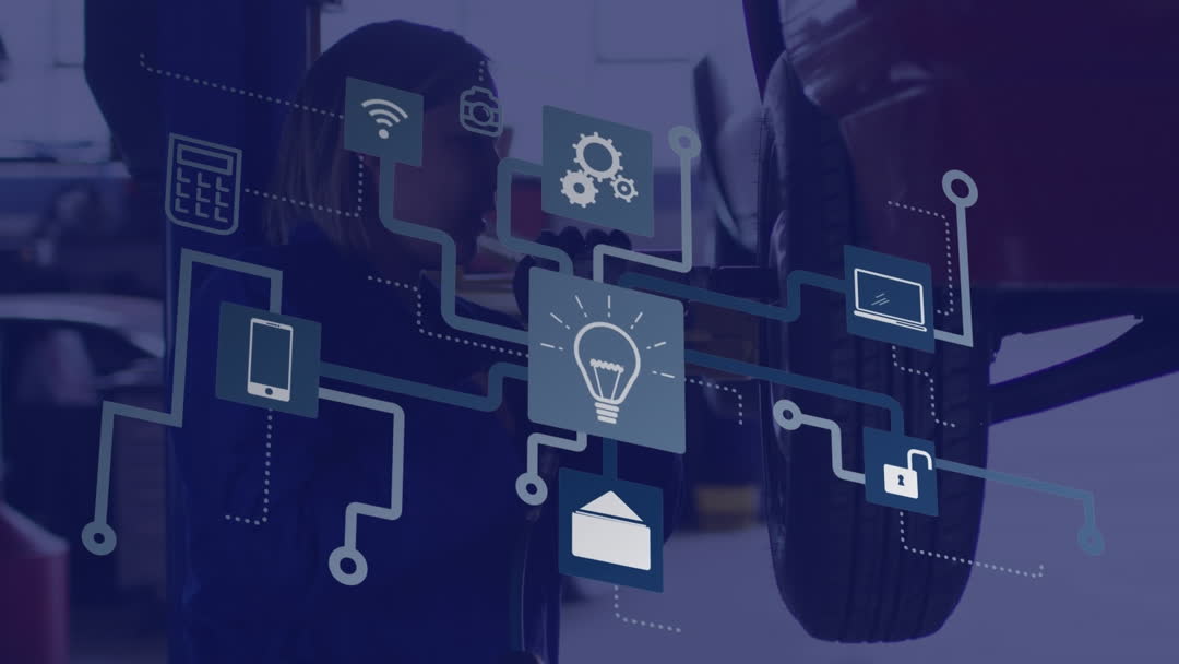 - Digital Interface Network Overlaid on Auto Repair Shop