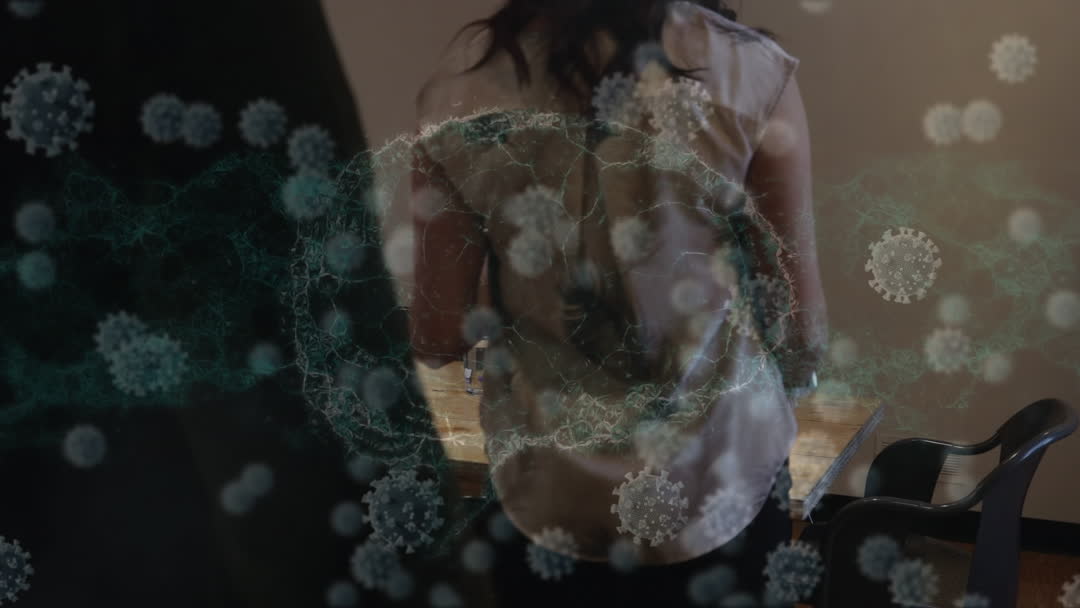 This animation creatively represents the impact of viruses on the business world, blending abstract digital videory with realistic scenarios. Ideal for presentations, educational content, or digital media exploring the intersection of public health and business environments.