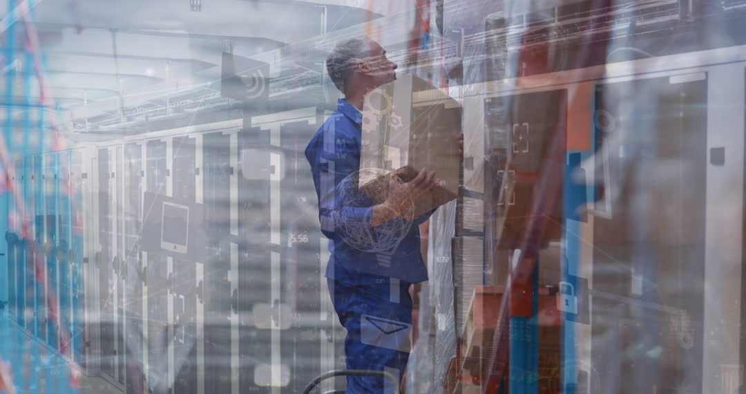 - Digital Interface Overlaying Server Room Warehouse Worker