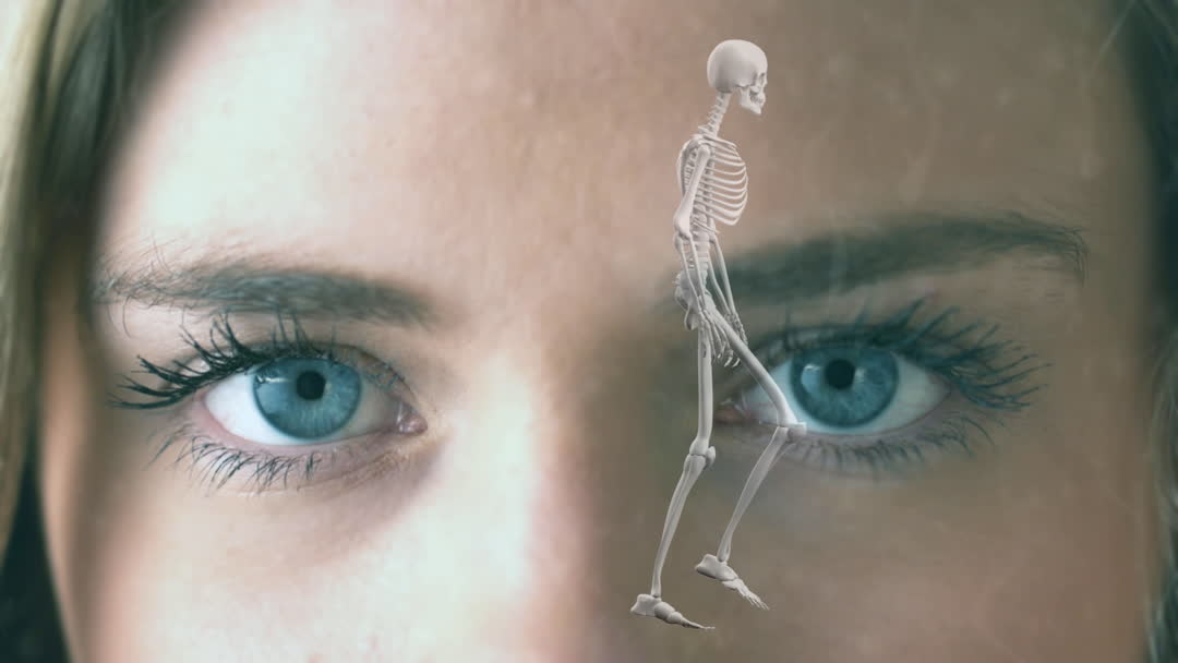 Digital Interface Showing Human Skeleton through Human Eyes Video