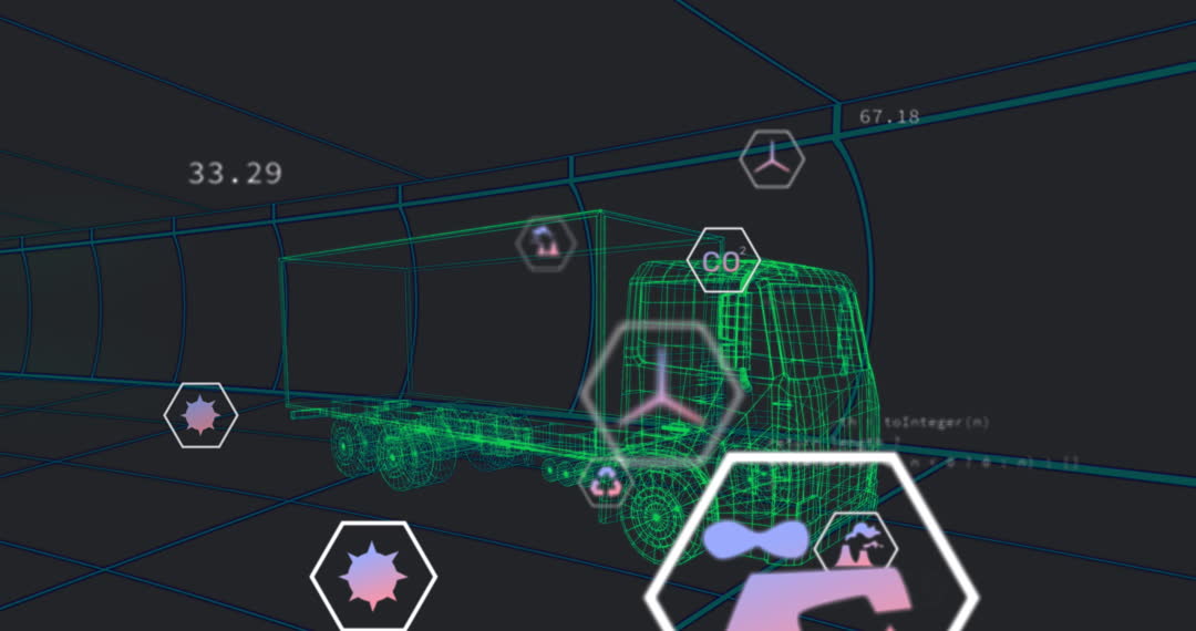 - Digital Interface with 3D Truck Model in Futuristic Display