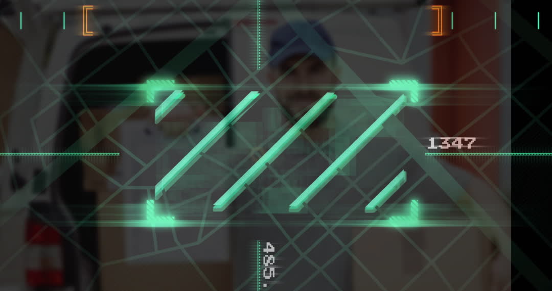 Animation features digital interface overlaying blurred background, combining futuristic design with delivery concept. Ideal for themes involving modern delivery, global connectivity, and logistic technologies. Useful for presentations about digital transformation in transportation and innovative shipping solutions.