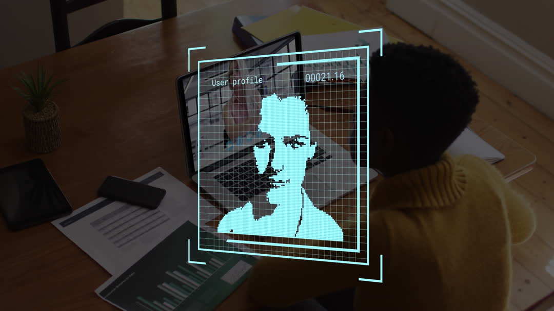 Digital Interface with Facial Recognition in Remote Learning Concept Video